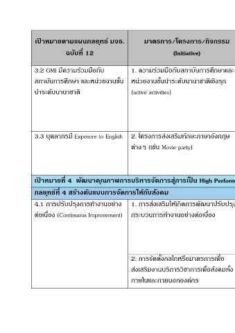 3.2 GMI มีความร่วมมือกับ 1. ความร่วมมือกับสถาบันการศึกษาและ 7. จ านวนกิจกรรมเชิงรุกที่เกิดจากความ 2 กิจกรรม N/A