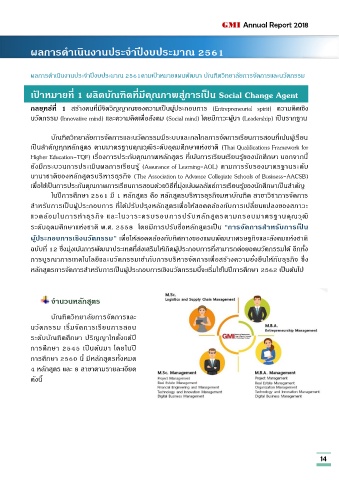 ผลการด าเนินงานประจ าปีงบประมาณ 2561ตามเป้ าหมายแผนพัฒนา บัณฑิตวิทยาลัยการจัดการและนวัตกรรม