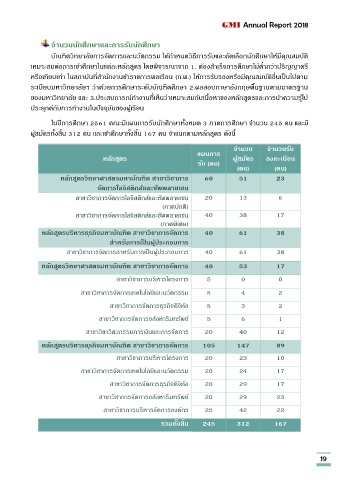 ในปีการศึกษา 2561 คณะมีแผนการรับนักศึกษาทั้งหมด 3 ภาคการศึกษา จ านวน 245 คน และมี