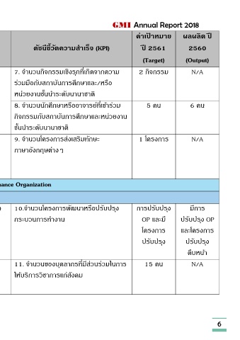 3.2 GMI มีความร่วมมือกับ 1. ความร่วมมือกับสถาบันการศึกษาและ 7. จ านวนกิจกรรมเชิงรุกที่เกิดจากความ 2 กิจกรรม N/A