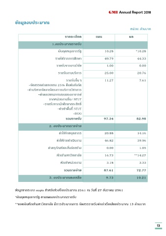 **ยอดเงินหักเข้ามหาวิทยาลัย มีการประมาณการ จัดสรรรายรับค่าเล่าเรียนโดยประมาณ 13 ล้านบาท