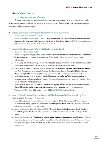ในปีพ.ศ 2561 บัณฑิตวิทยาลัยการจัดการและนวัตกรรม มีบทความวิชาการรวมทั้งสิ้น 33 เรื่อง