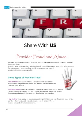 - False Claims: it is occurs when a provider submits a claim for This is just a small part of one kind of health care fraud