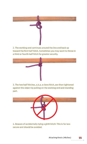 3. The two half hitches, a.k.a. a clove hitch, are then tightened