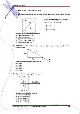 18. Di titik P terdapat dua vektor medan magnet yang besarnya masing-masing B1 = 8 tesla