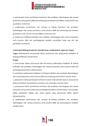 prasarana, serta peserta didik dan pembangunan karakter sekolah dasar; f. penyusunan