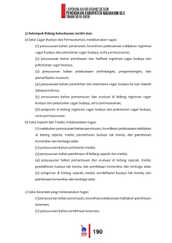 a) Seksi Cagar Budaya dan Permuseuman, melaksanakan tugas: