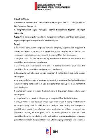II. Pengelompokan Tugas Perangkat Daerah Berdasarkan Layanan Kelompok