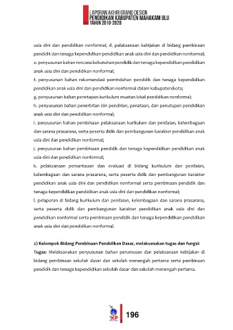 usia dini dan pendidikan nonformal; d. pelaksanaan kebijakan di bidang pembinaan
