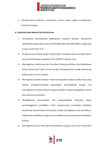 2. Dicapainya penuntasan target Wajib Belajar Pendidikan Dasar Sembilan Tahun