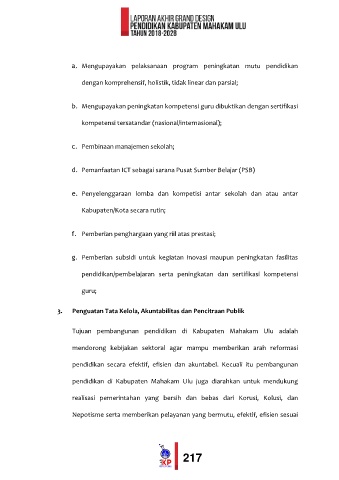 pendidikan secara efektif, efisien dan akuntabel. Kecuali itu pembangunan