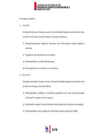 Strategi ketahanan budaya secara internal adalah kegiatan pelestarikan dan