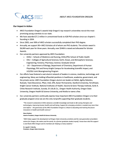 • Our university partners con,nually express how important ARCS Founda,on Oregon is to their