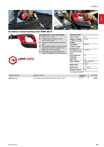 Cordless reciprocating saw WSR 22-A Cordless reciprocating saw WSR 36-A