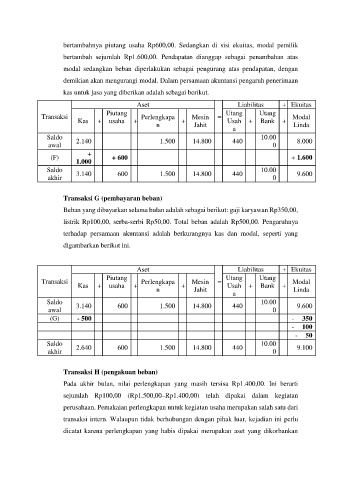 bertambahnya piutang usaha Rp600,00. Sedangkan di sisi ekuitas, modal pemilik