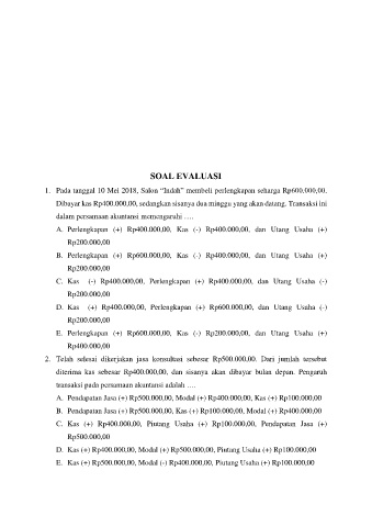 1. Pada tanggal 10 Mei 2018, Salon “Indah” membeli perlengkapan seharga Rp600.000,00.