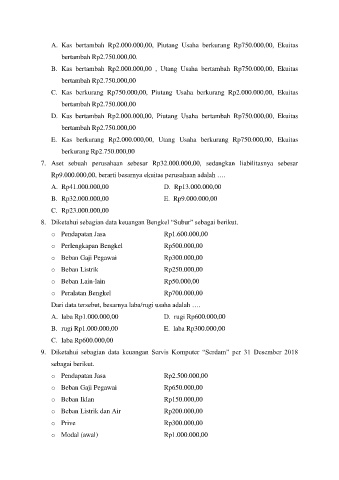 8. Diketahui sebagian data keuangan Bengkel “Subur” sebagai berikut.