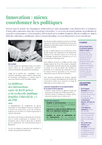 LES CHIFFRES retombées économiques qui, selon les plus récentes • Comment mieux reconnaître la contribution des entre la R&D privée • Comment mieux orienter la dépense fiscale que innovants détectés et