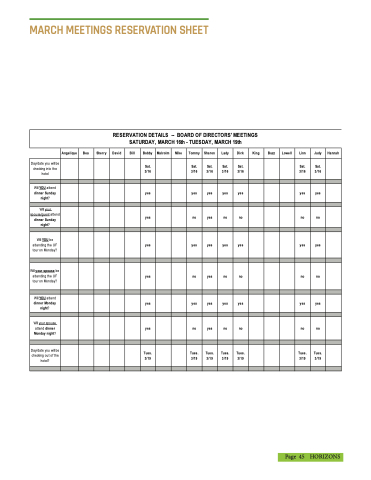 MARCH MEETINGS RESERVATION SHEET