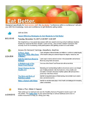 Designed specifically for food service staff, this Eat Better “conference within a conference” will arm