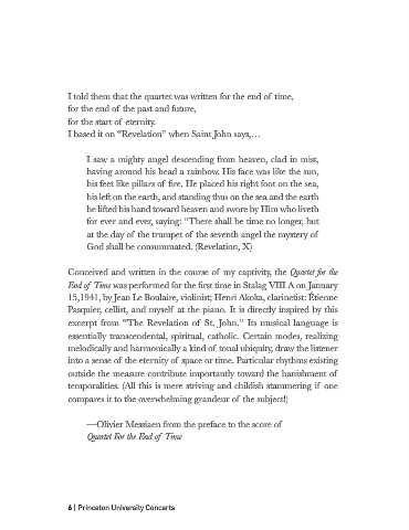 I told them that the quartet was written for the end of time,