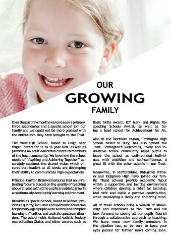 Wigan, caters for 11 to 16 year olds, as well as Trust. Tottington’s welcoming, lively and in-