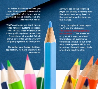 system only a few years from its release date will soon perform like new. of quality systems at a fair price. would like to have in our inven-