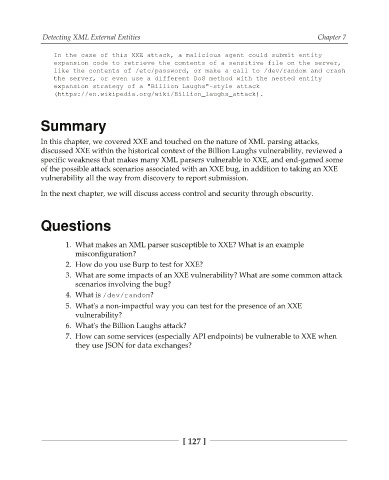 In this chapter, we covered XXE and touched on the nature of XML parsing attacks,