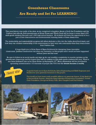 Outdoor Lab schools. Both greenhouses at Mount Evans and Windy Peak will be home to more than 6,000 Shannon Hancock Leah Roche Paige Brophy Lindsay Clark