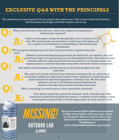 financial support and strategic projects, making Are you a former Jeffco Outdoor Lab student