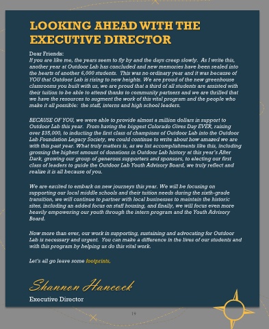 Outdoor Lab this year. From having the biggest Colorado Gives Day EVER, raising