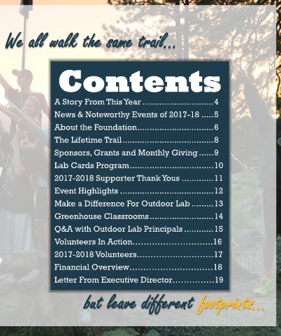 as math, etc. Outdoor Lab showed me how the subjects intertwined and were 2017-2018 Supporter Thank Yous ............. 11
