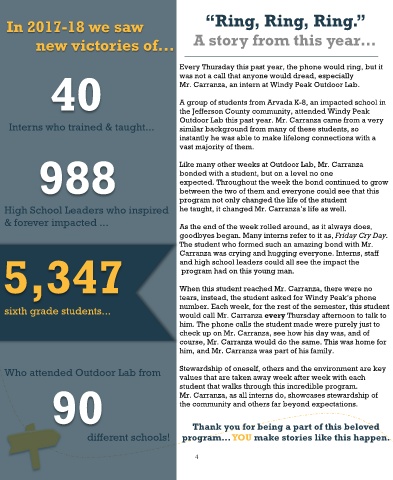 4 Schroeder, for the wonderful photos taken at Outdoor Lab!