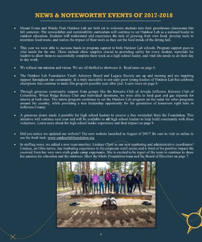group met up to do fire mitigation on the high-altitude hydrosphere trail. The participants grew as a team and left bonded • The Outdoor Lab Foundation Youth Advisory Board and Legacy Society are up and running and are inspiring