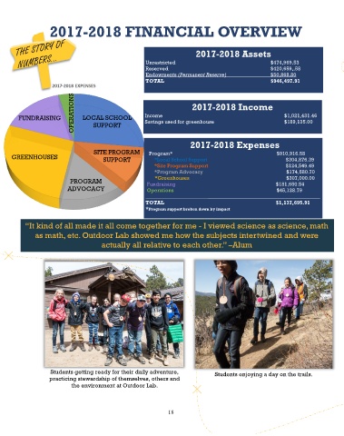 as math, etc. Outdoor Lab showed me how the subjects intertwined and were 2017-2018 Supporter Thank Yous ............. 11