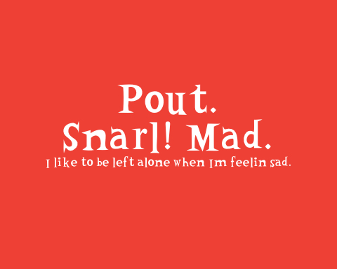 Pout Snarl! Mad I I like to be left alone when Im feelin sad