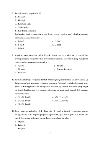 9. Aspek wawasan nusantara meliputi aspek trigatra yang merupakan aspek alamiah dan