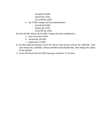 10. Setor ke RW sebesar Rp 375.000,- dengan perincian pembayaran ;