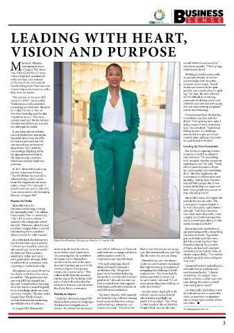At Gagasi FM, Minenhle’s impact. The station has surpassed community work. “Ours is to let People’s Park, and we sell out a W: www.gagasiworld.co.za