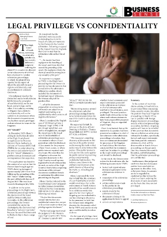 proceedings, the Owners confidential nature does not per the Owners were obliged to ■ certain correspondence W: www.coxyeats.co.za