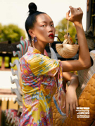 THE FOLK WISDOM นางแบบสวมชุดกระโปรง ยาวคลุมเข่าแขนสั้น ผ้าไหมพิมพ์ลายตัดต่อ จาก DISAYA ตุ้มหู จาก EK THONGPRASERT