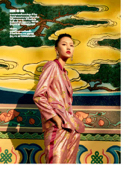 นางแบบสวมแจ็กเกตปกสูท ผ้าไหม ตัดต่อปักตกแต่งลายดอกไม้และเลื่อม ใส่กับกางเกงขายาว ผ้าไหมตัดต่อ ปักเลื่อมเข้าชุด ทั้งสองจาก SRETSIS ตุ้มหู จาก EK THONGPRASERT