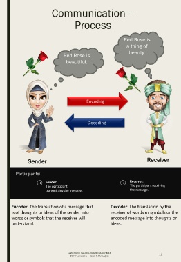 is of thoughts or ideas of the sender into receiver of words or symbols or the