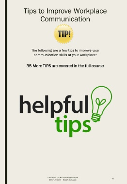 Tips to Improve Workplace Communication The following are a few tips to improve your communication skills at your workplace: 35 More TIPS are covered in the full course CAREPOINT GLOBAL BUSINESS SERICES 43 Communication – Basic & Strategies