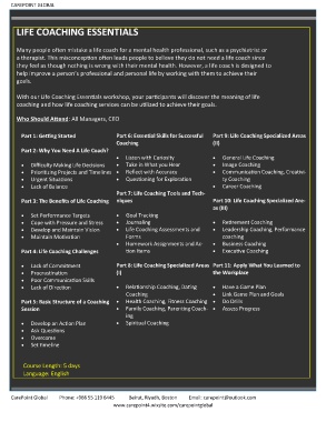 • Lack of Commitment Part 8: Life Coaching Specialized Areas Part 11: Apply What You Learned to