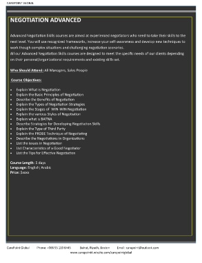 All our Advanced Negotiation Skills courses are designed to meet the specific needs of our clients depending