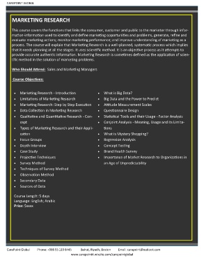 process. The course will explain that Marketing Research is a well-planned, systematic process which implies