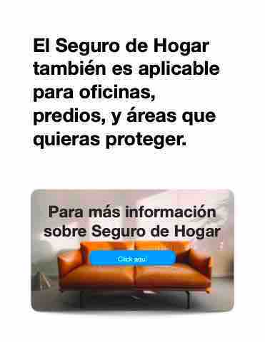 El Seguro de Hogar también es aplicable para oficinas, predios, y áreas que quieras proteger. Para más información sobre Seguro de Hogar Click aquí