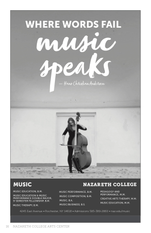 4245 East Avenue • Rochester, NY 14618 • Admissions 585-389-2860 • naz.edu/music