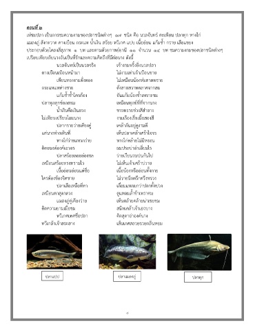 ประกอบด้วยโคลงสี่สุภาพ ๑ บท และตามด้วยกาพย์ยานี ๑๑ จ านวน ๑๔ บท ชมความงามของปลาชนิดต่างๆ